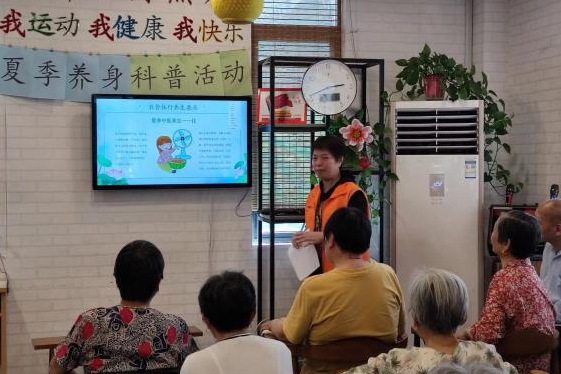 為有效預(yù)防夏季疾病的發(fā)生,普及健康知識,各機(jī)構(gòu)紛紛開展“三伏天”養(yǎng)生知識講座,向老人細(xì)心科普防暑的正確方式,做到“合理飲食、適量運(yùn)動(dòng)、控制情緒”。