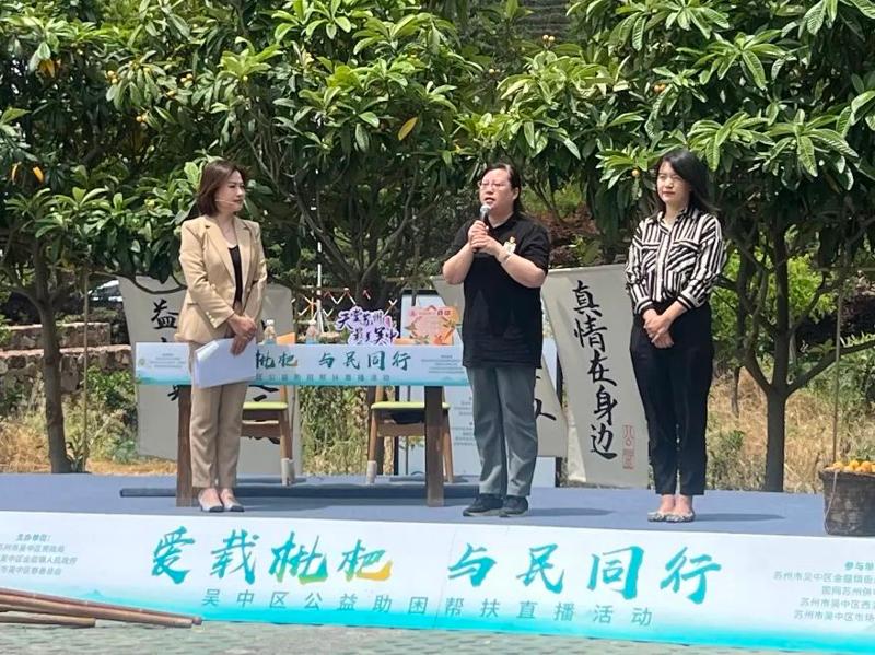 為有效拓寬特殊困難家庭枇杷銷售渠道,增加特殊困難家庭收入,提高其生活質量水平,共享改革發展成果,5月21日上午,由吳中區民政局、金庭鎮人民政府、吳中區慈善總會聯合搭建做公益、獻愛心、鏈資源平臺,開展“愛載枇杷 與民同行”公益助困幫扶直播活動。