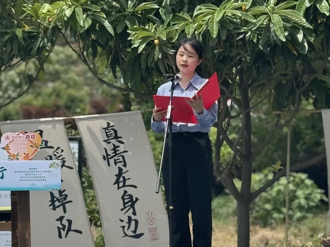 吳中區西浦附屬學校組織學生參加助農研學活動,現場朗誦學校原創詩《枇杷》,幫助農戶采摘枇杷,參與到促進共同富裕、鄉村振興的實踐中來,實現教育的真學實做、學有所用。