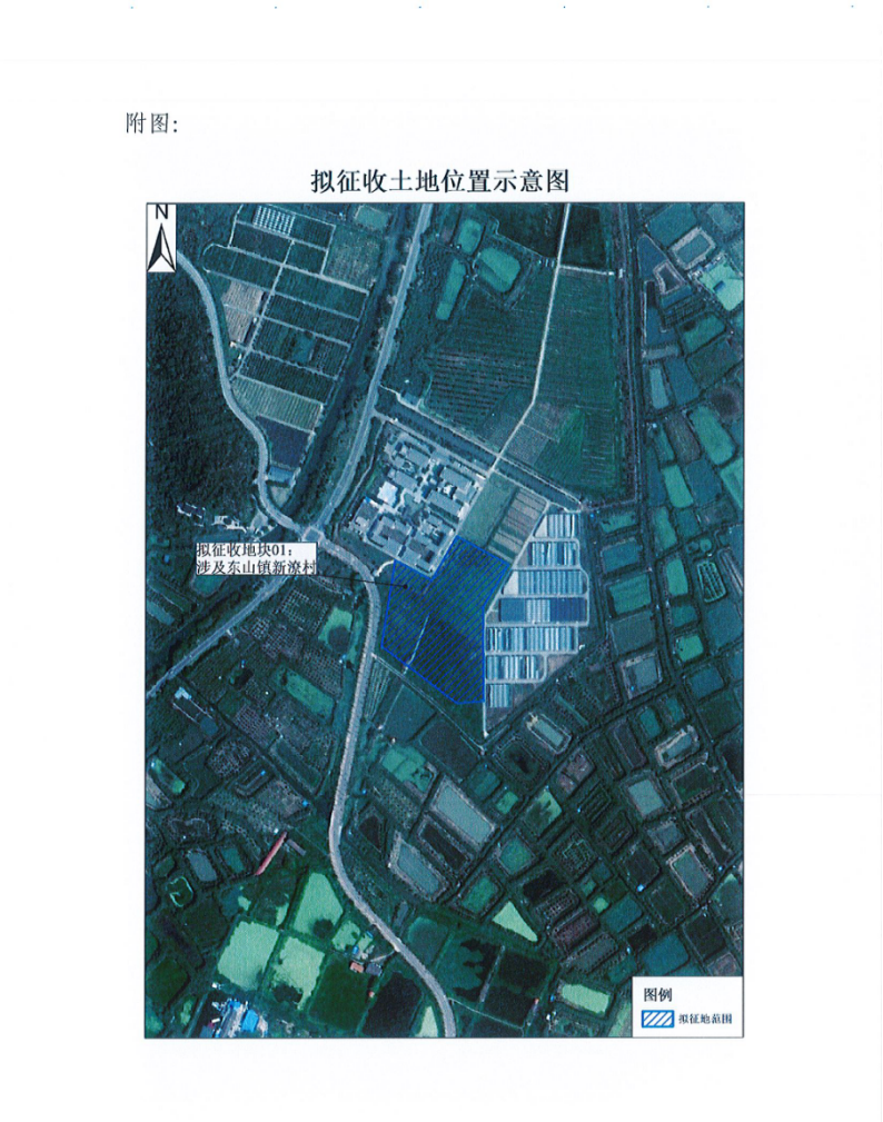 因公共利益需要,擬征收蘇州市吳中區東山鎮新潦村范圍內土地面積3.3443公頃,土地現狀和四至范圍詳見附圖。本次征地符合《中華人民共和國土地管理法》第四十五條規定為了公共利益需要,可以依法征收的情形,本次征收土地目的為由政府組織實施的科技、教育、文化、衛生、體育、生態環境和資源保護、防災減災、文物保護、社區綜合服務、社會福利、市政公用、優撫安置、英烈保護等公共事業需要用地的。