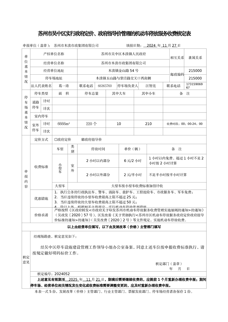 機動車停放服務收費核定表(2024052)(紫涇路停車場)
