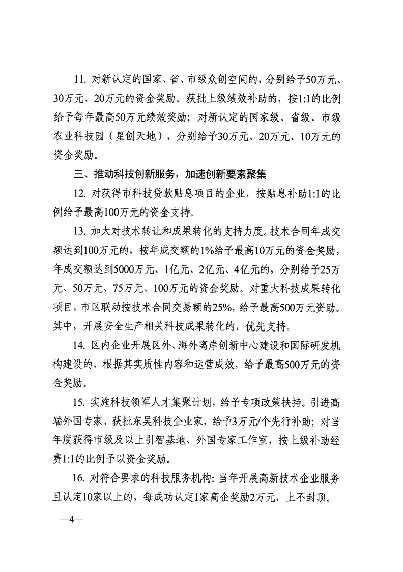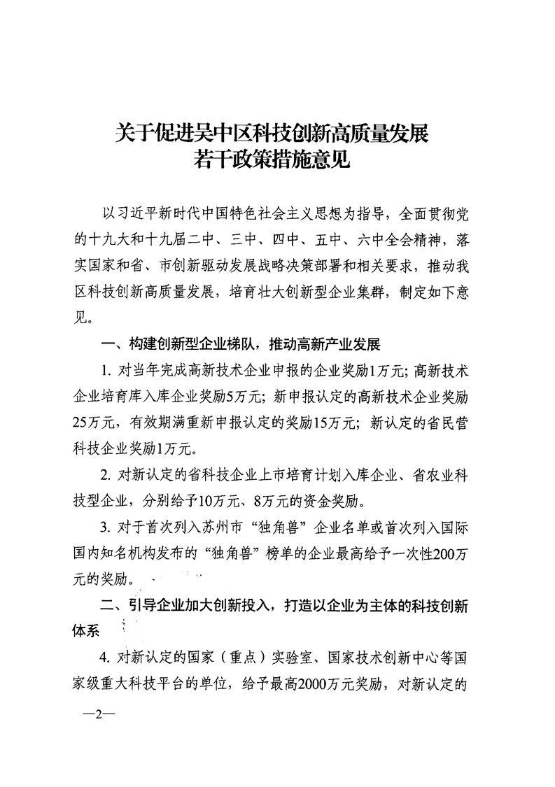 區政府印發關于促進吳中區科技創新高質量發展若干政策措施意見的通知