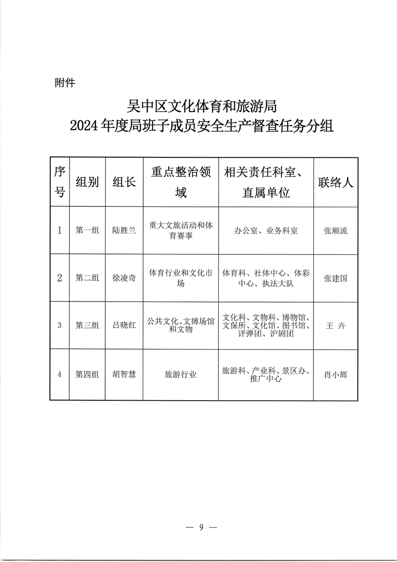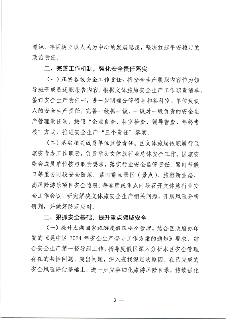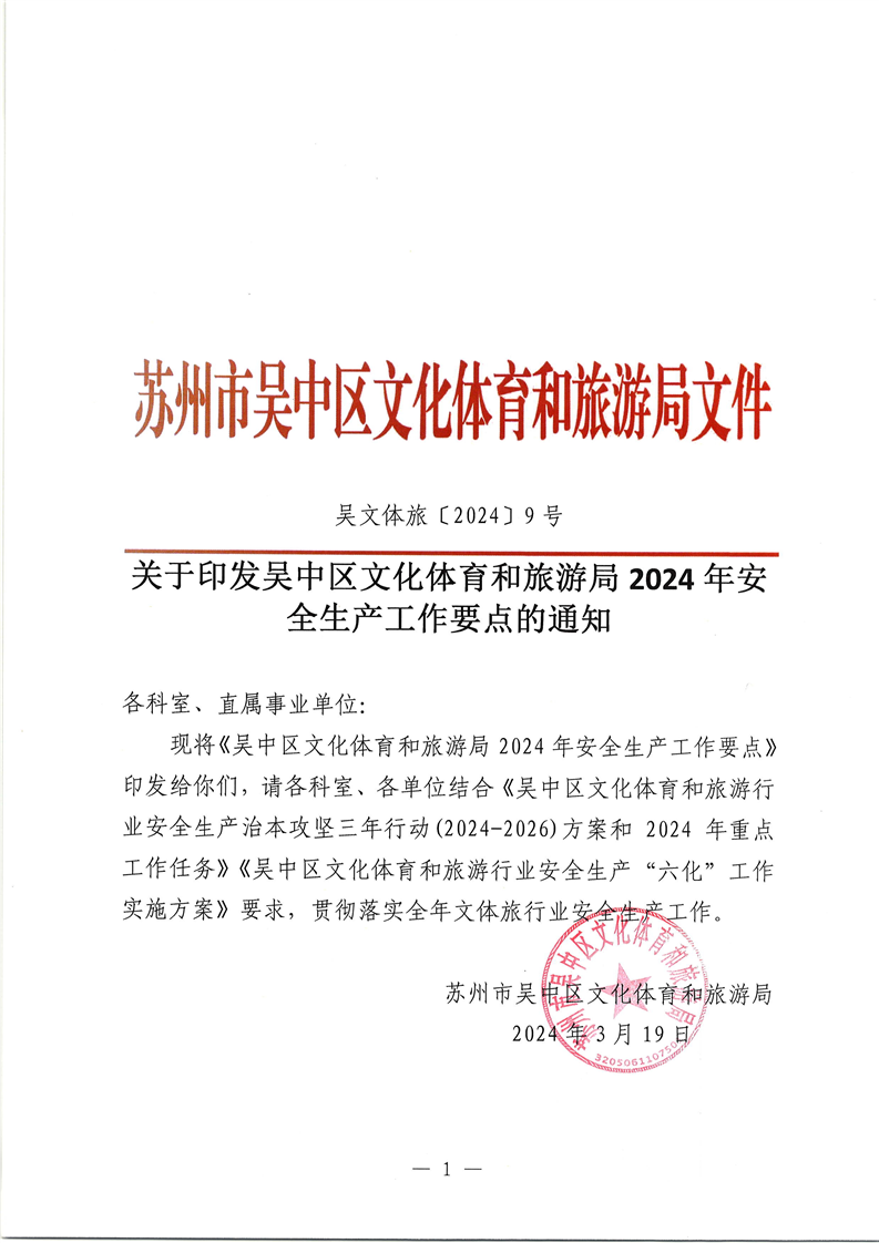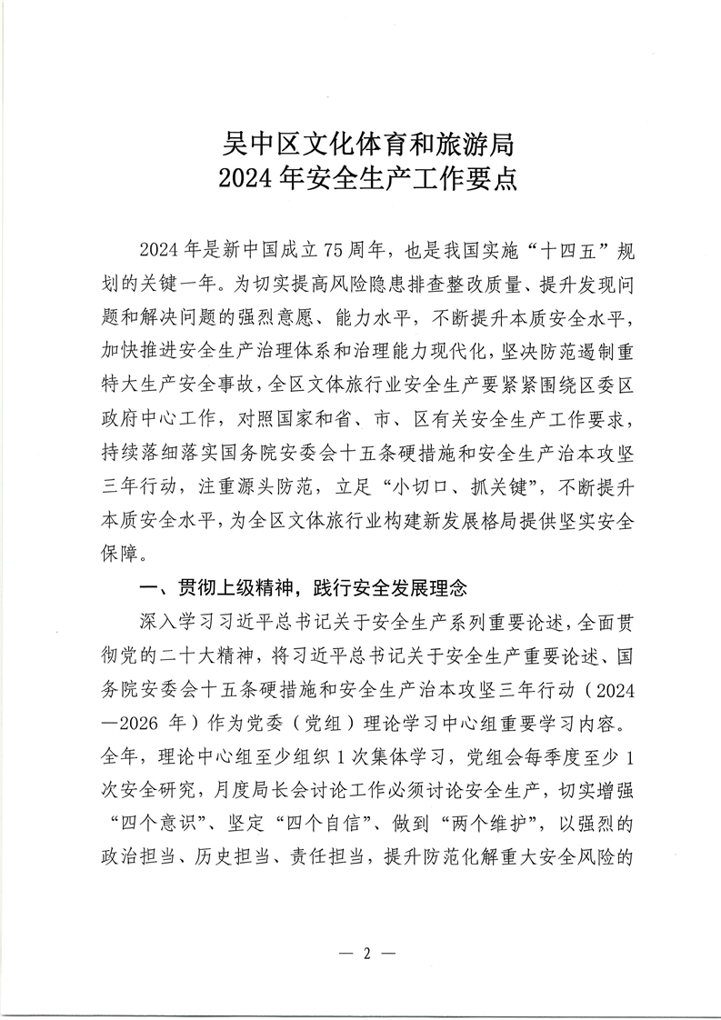 關于印發吳中區文化體育和旅游局2024年安全生產工作要點的通知