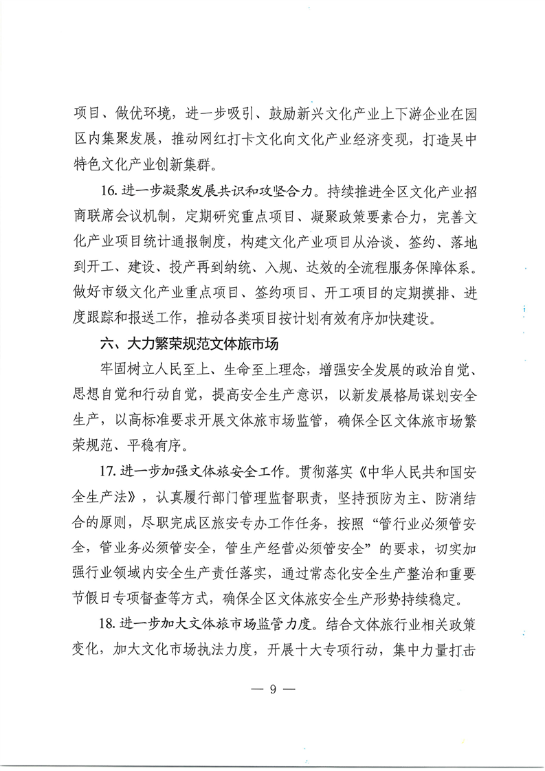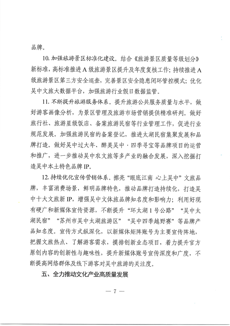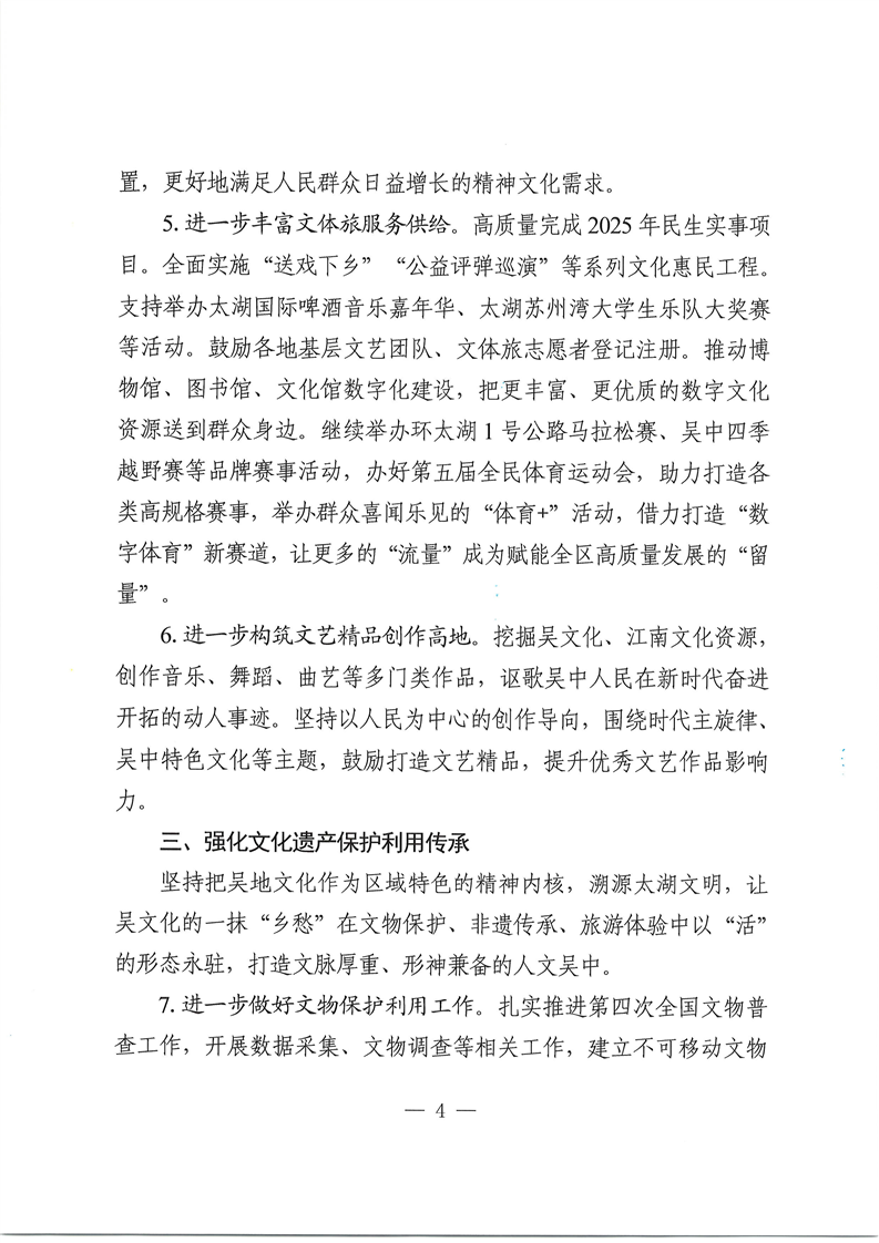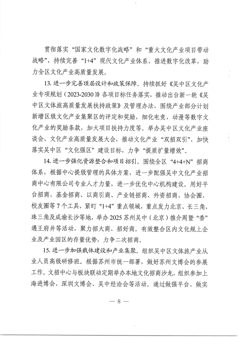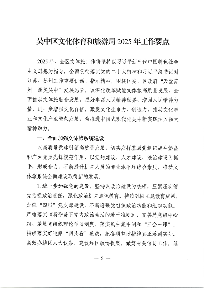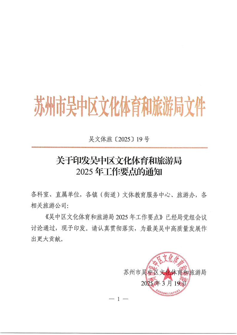 吳中區文化體育和旅游局2025年工作要點的通知