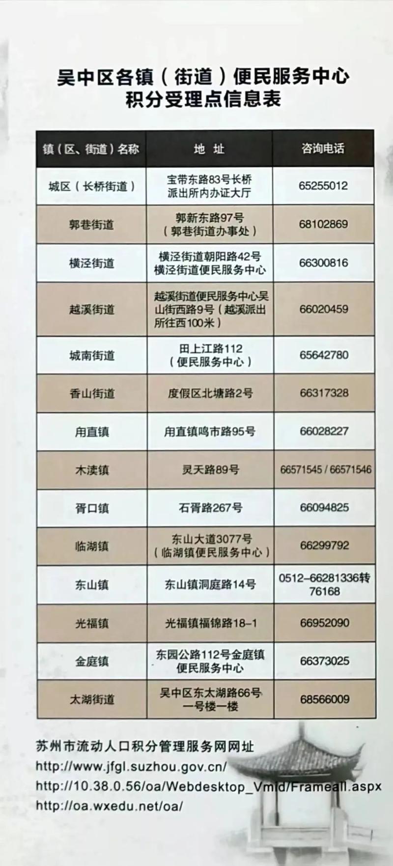 吳中區各鎮(街道)便民服務中心積分受理點信息表