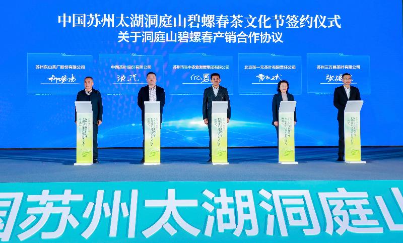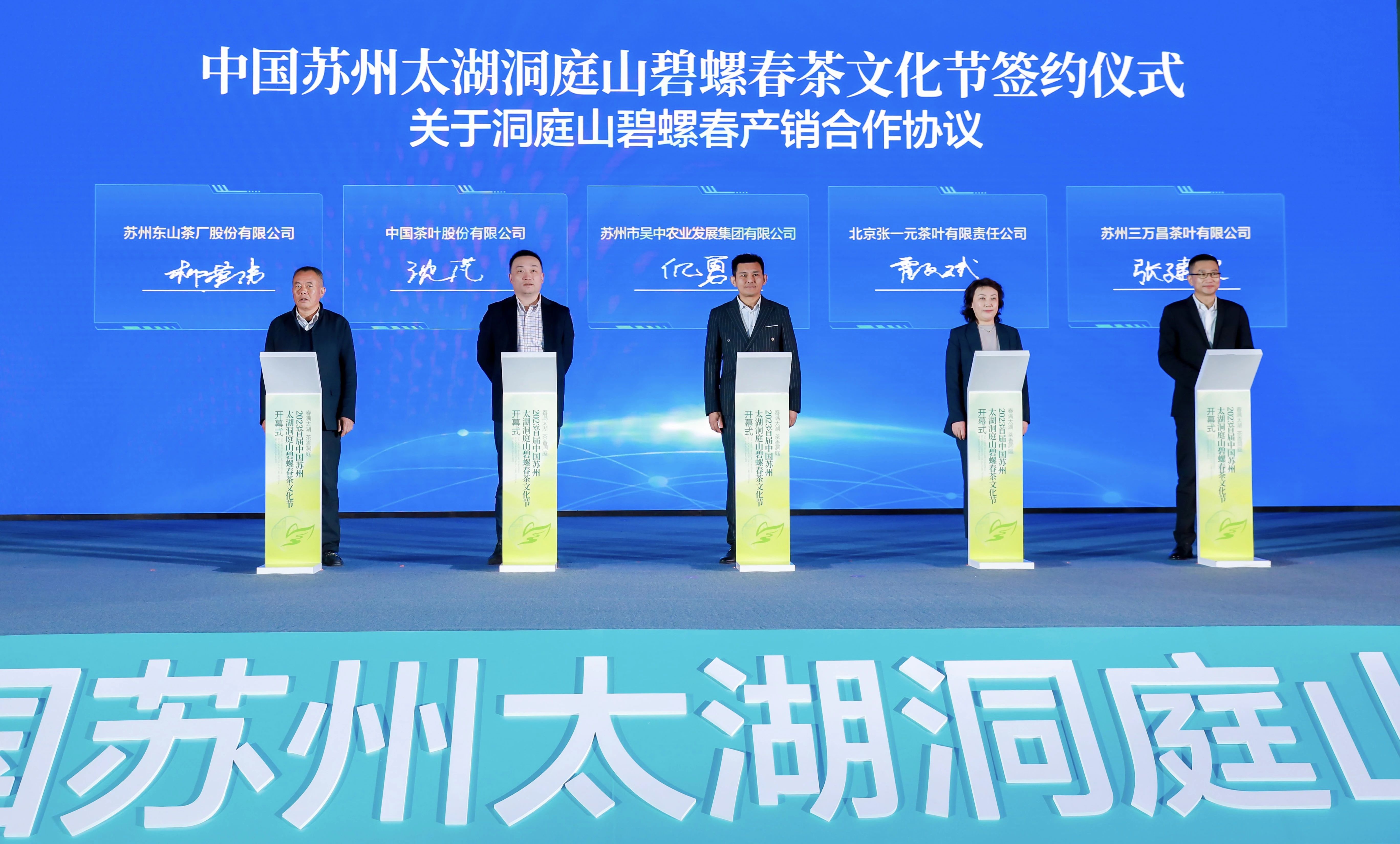 吳中農(nóng)發(fā)集團(tuán)、中國茶葉股份有限公司、蘇州東山茶廠股份有限公司、北京張一元茶葉有限責(zé)任公司、蘇州三萬昌茶葉有限公司簽訂產(chǎn)銷合作協(xié)議。